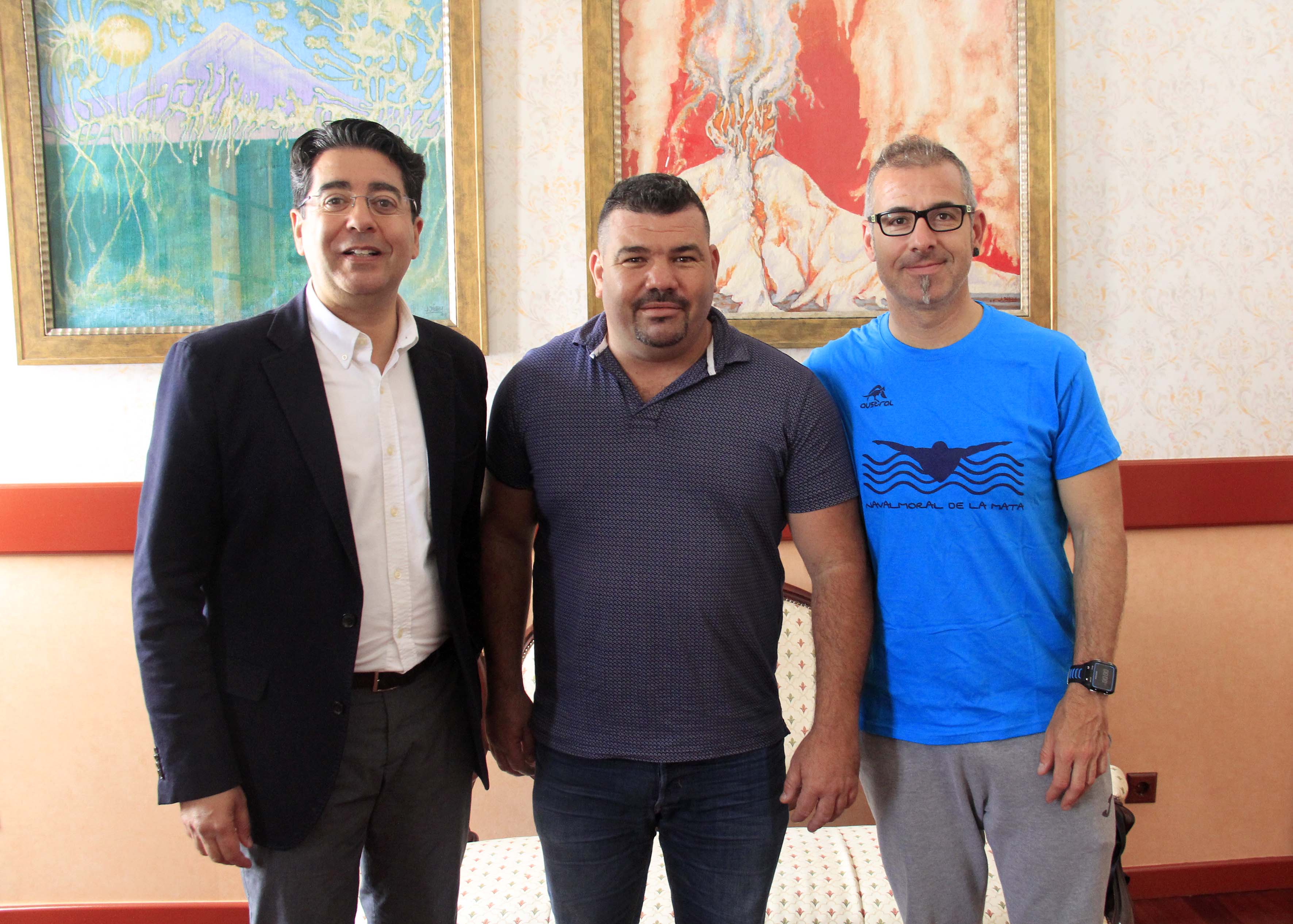 La Travesía a nado Alcaraván contará con la participación de destacados nadadores, como el campeón paralímpico Toni Franco, que este mediodía visitaba las instalaciones municipales de Guía de Isora.
