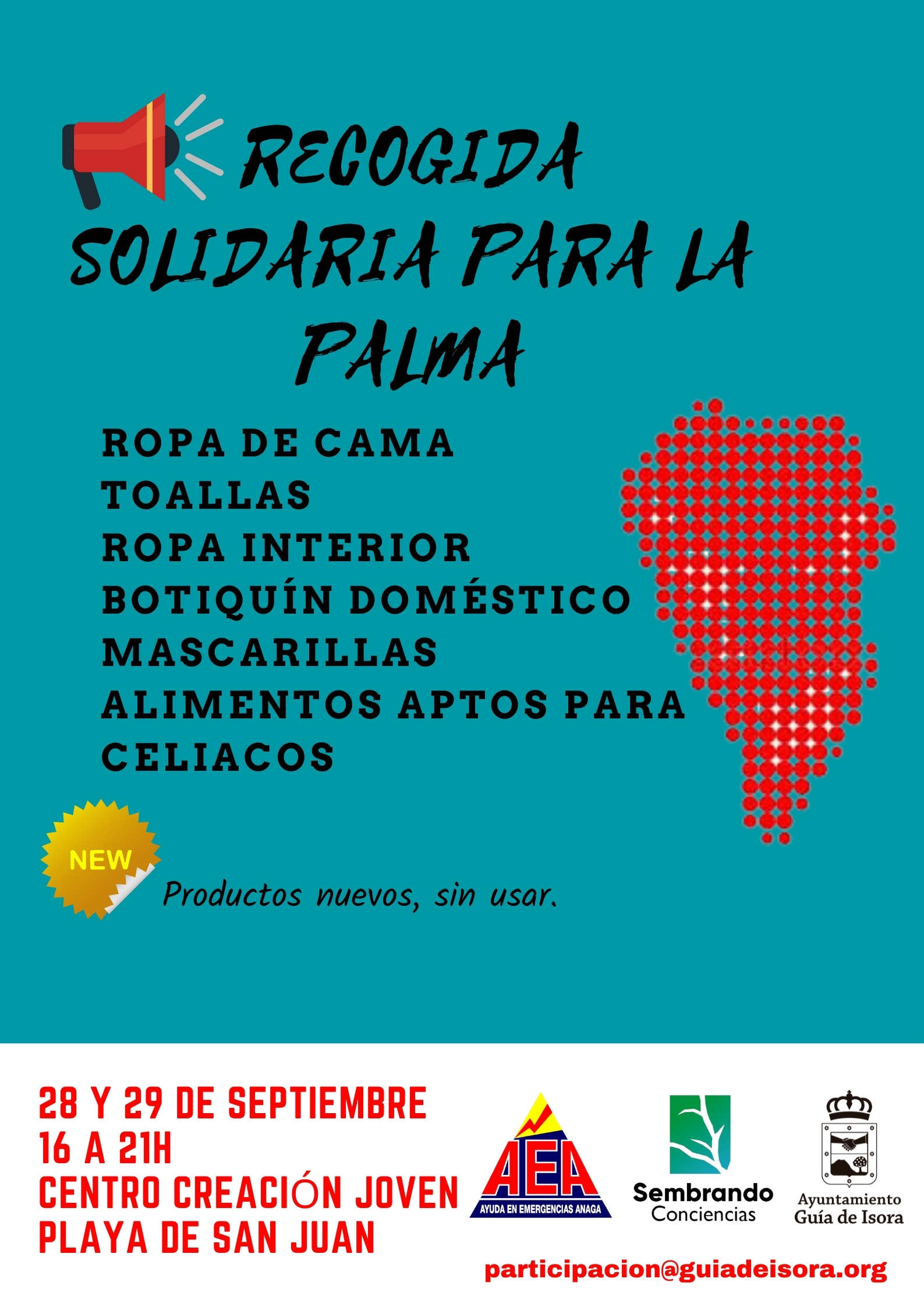 En atención a la demanda de las instituciones palmeras y en coordinación con Ayuda en Emergencias Anaga – AEA y Sembrando Conciencias, el Ayuntamiento realizará la recogida de los siguiente productos: