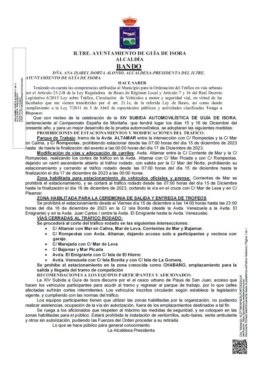 Bando de Alcaldía – XIV Subida Automovilística de Guía de Isora