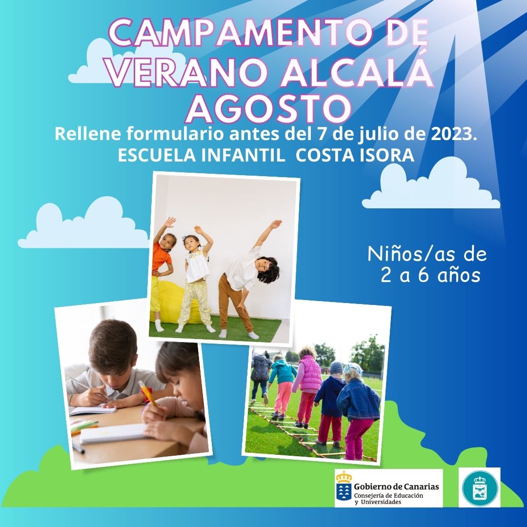 Desde la Concejalía de Educación se está trabajando para que la actividad del Campamento en el mes de agosto en la Escuela Infantil de Alcalá se pueda llevar a cabo. El Campamento es una actividad complementaria para niños y niñas de 2 a 6 años, que se desarrollará de lunes a viernes en horario de 8:00 a 15:00 horas.