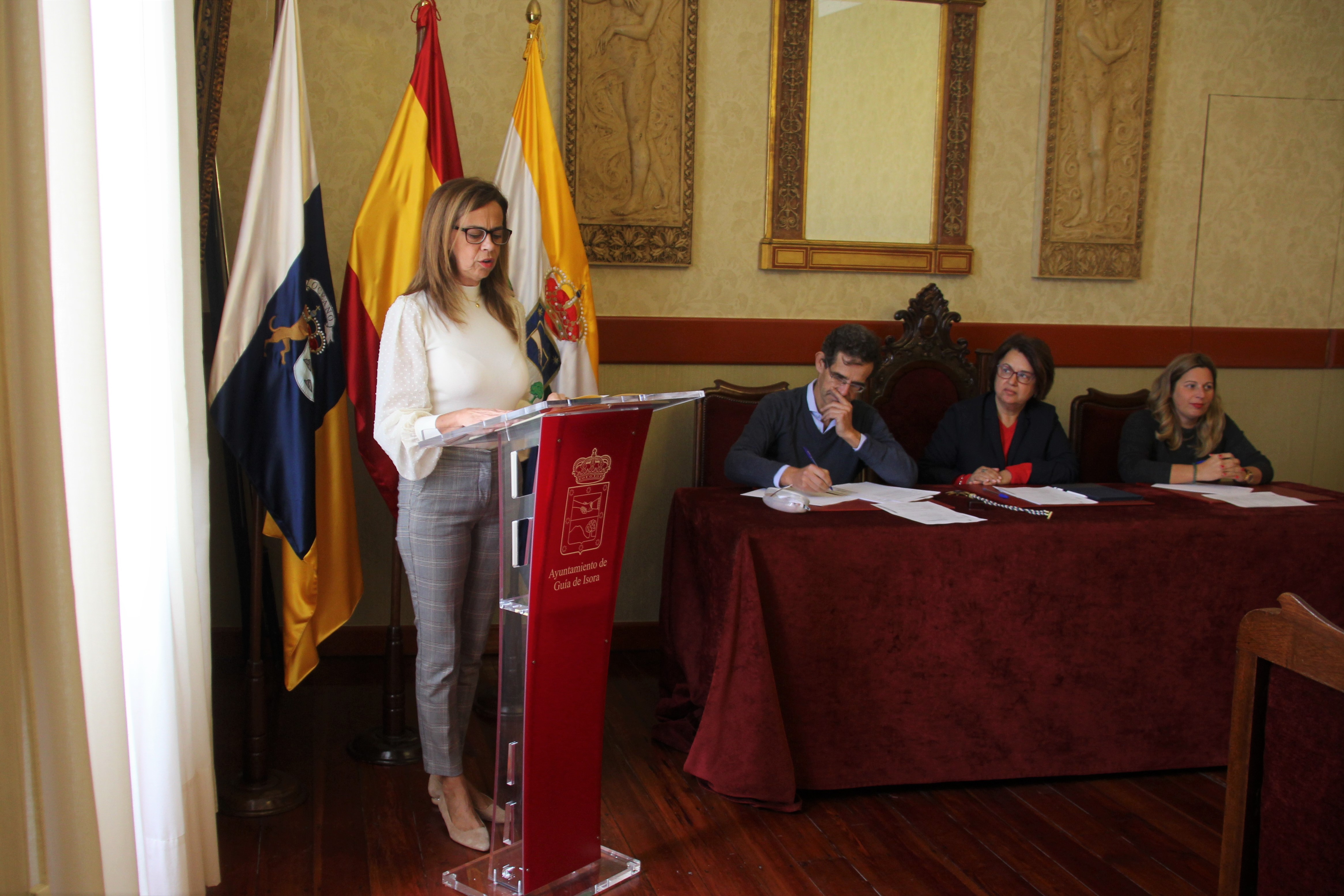 Tras jurar su cargo, la nueva edil de CC recibió la bienvenida de la alcaldesa, Josefa Mesa, que le deseó lo mejor en el desempeño de sus funciones y le entregó la insignia municipal.