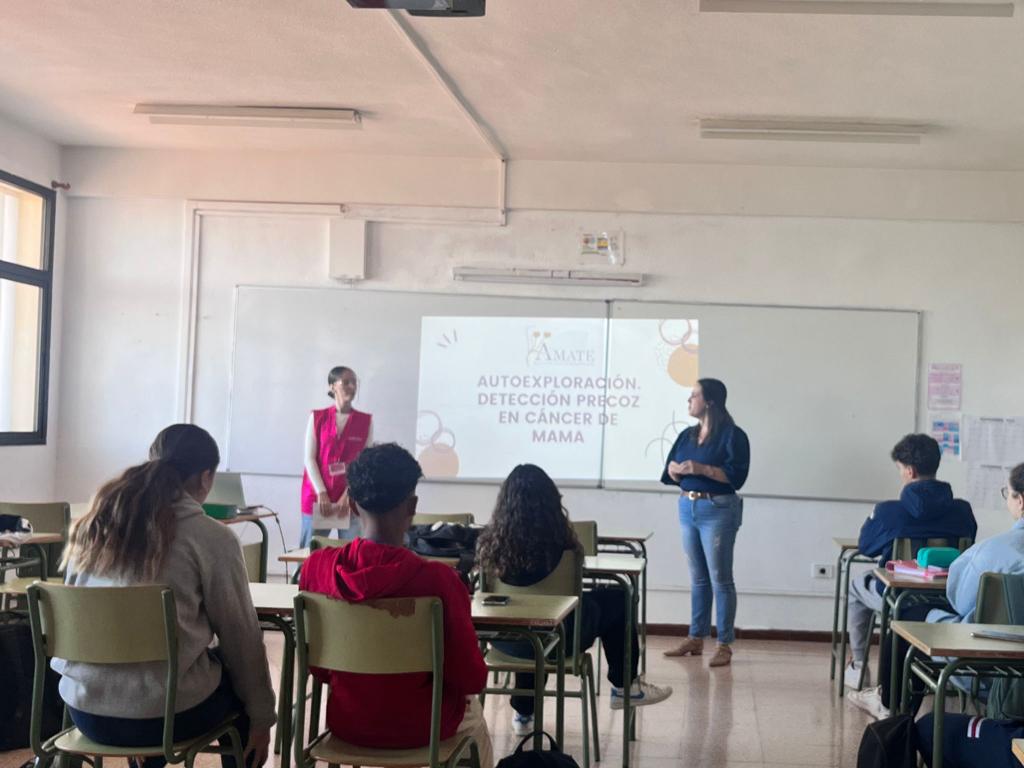 El pasado 6 de Noviembre nuestra Concejal de Servicios Sociales, Igualdad, Vivienda y Formación, Acerina González, acompañó a la asociación AMATE (Asociación de Cáncer de Mama de Tenerife), en unas charlas realizadas para el alumnado de 1º de Bachiller, en el Instituto de Secundaria IES Manuel Martín González.