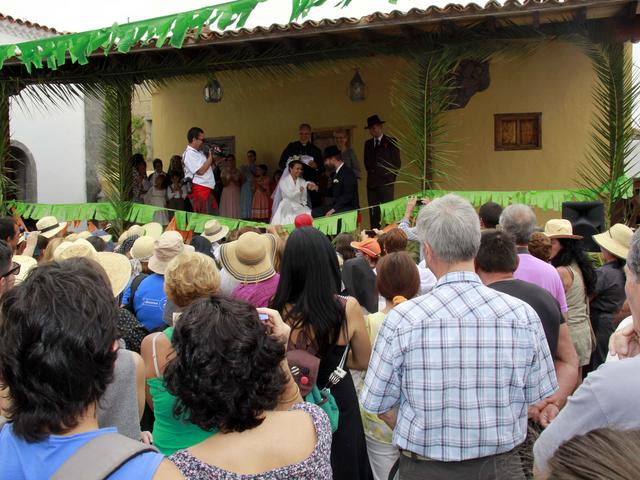 Una veintena de integrantes del colectivo de Valsequillo fueron los invitados de honor de esta edición del Día de las Tradiciones en Chirche y su visita no sólo sirvió para estrechar lazos de amistad entre ambos pueblos, sino que además los grancanarios participaron activamente en las recreaciones y en cuatro de los puestos de artesanos que se instalaron. Y no se quedaron en la interpretación de papeles secundarios, sino que el propio Aridane fue el novio en la boda a la antigua usanza que lo unió en “santo matrimonio” a una joven de Chirche.