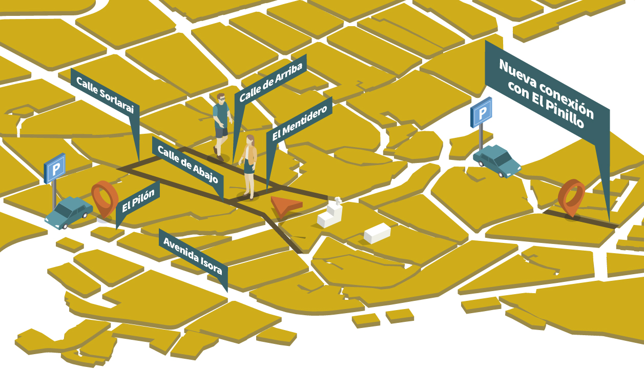 Además de los aparcamientos ganados el año pasado en la calle del Campo, hay un proyecto redactado para un nuevo estacionamiento en la zona de El Pilón, un lugar estratégico porque da servicio desde la carretera general y conecta con el resto de calles del casco que serán peatonales.