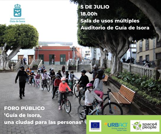 Guía de Isora ha sido una de las 10 ciudades europeas seleccionadas para formar parte del proyecto SPACE4PEOPLE “CO-CREATIVE PLANNING PROCESSES TO ASSESS, EVALUATE AND IMPROVE PUBLIC SPACE USE FOR TRANSPORT TO CREATE MORE ATTRACTIVE, ACCESSIBLE, INCLUSIVE AND LIVEABLE PUBLIC SPACES FOR PEOPLE”. La red tiene como objetivo que las ciudades mejoren su capacidad de gestión del uso del espacio público, centrándose en tres áreas esenciales: 1) Conexiones peatonales y espacios peatonales, 2) Aparcamientos y transporte urbano, y 3) Intermodalidad.