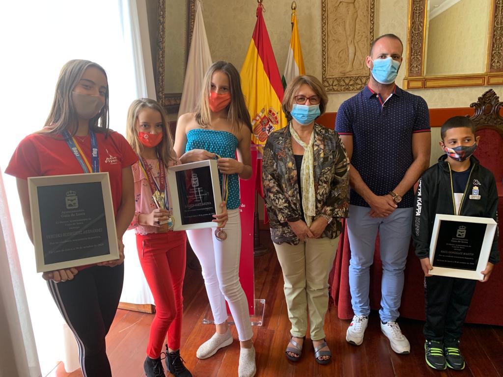 El pasado miércoles 30 de septiembre, jóvenes de Guía de Isora recibieron un homenaje para reconocer el éxito de su carrera deportiva. En representación del Ayuntamiento los recibieron Josefa Mesa, alcaldesa del municipio, y Paúl Santos, concejal de Deportes.
