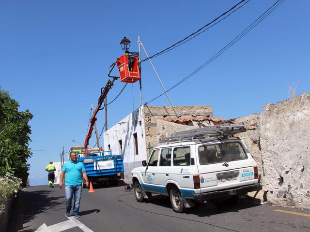 A mediados del pasado mes de abril comenzaron los trabajos de cambio de las luminarias del núcleo isorano de Chío por otras de menor consumo energético que permitirán al Ayuntamiento de Guía de Isora un ahorro del 24% respecto a la factura eléctrica actual. Así lo informa el concejal de Servicios Municipales y Equipamiento, Bruno Domínguez, que explica además que “las nuevas farolas son del llamado modelo Villa, que tienen una estética más acorde a los núcleos rurales con un brazo de aluminio labrado”.