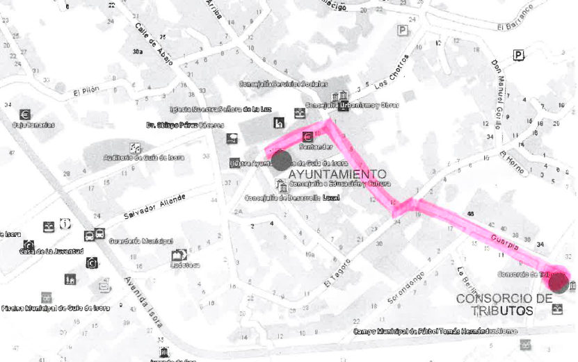 Adjuntamos plano de situación y foto de la oficina del Consorcio de Tributos de Guía de Isora (C/ Guarpía, 5).