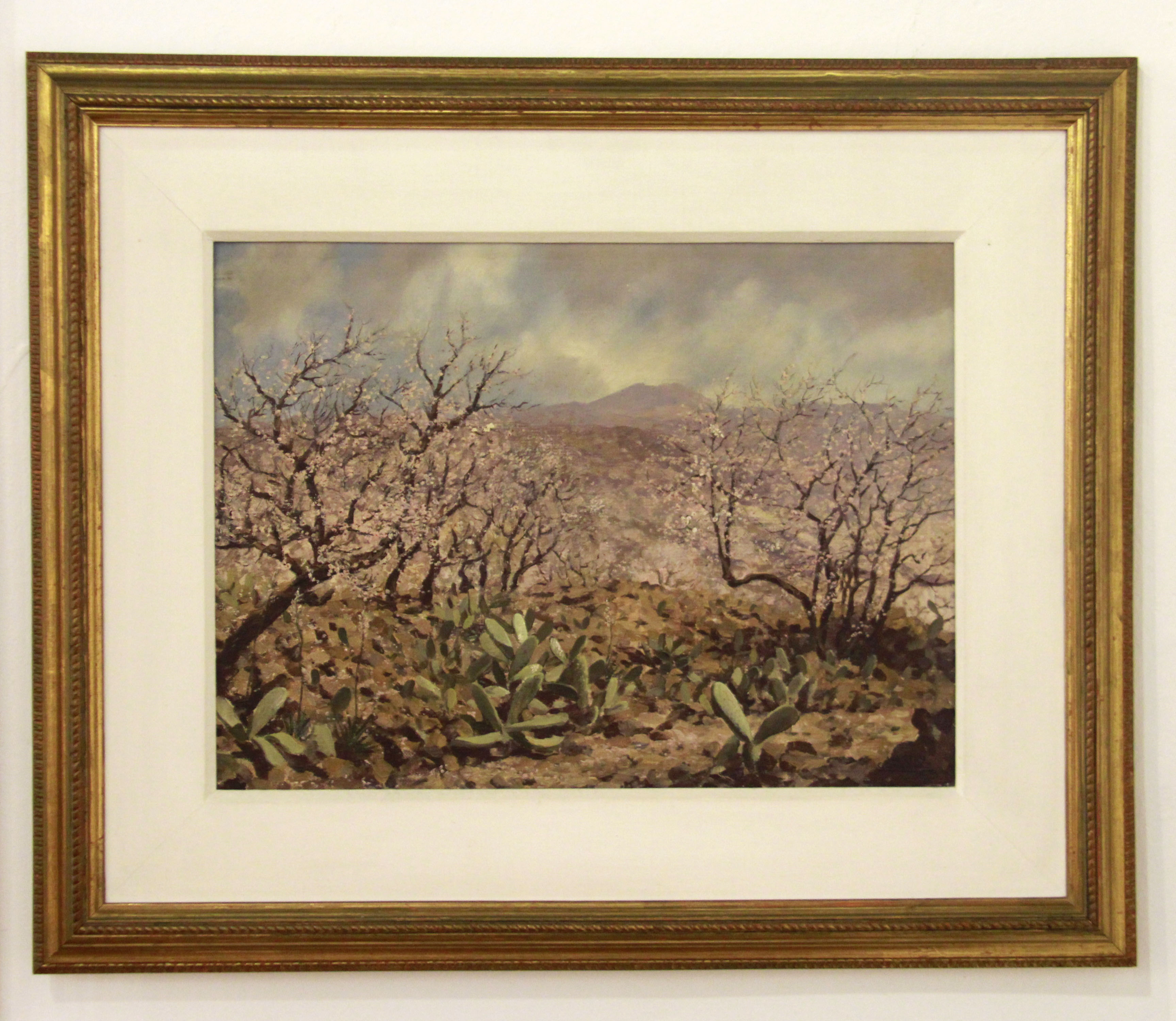 El cuadro fue pintado por Manuel Martín González en la primera mitad del siglo XX. Muestra un paisaje del campo isorano, presumiblemente en los alrededores del núcleo de Aripe. Se trata de un óleo sobre lienzo, de 43x60cm, en el que pueden verse tuneras, almendros en flor y al fondo, el volcán Pico Viejo. El cuadro se expone junto a una decena de obras adquiridas por el Ayuntamiento de Guía de Isora en una sala en la que puede contemplarse la faceta más conocida del pintor isorano: la de paisajista. En esta sala también destacan las conocidas pinturas del Teide y del entorno de Las Cañadas a las que el pintor dotaba de una especial atmósfera.