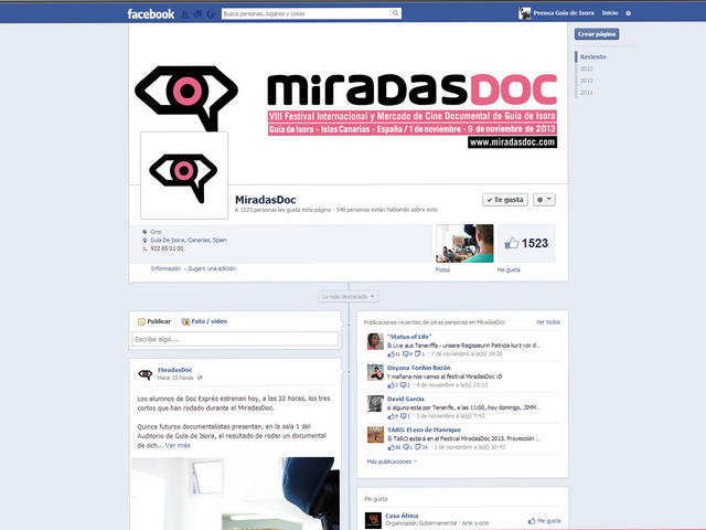 La octava edición del Festival Internacional de Documentales de Guía de Isora dio a conocer la programación de sus diferentes secciones el 15 de octubre, desde esa fecha hasta el día de ayer el perfil de Facebook de MiradasDoc había recibido 41.631 visitas.