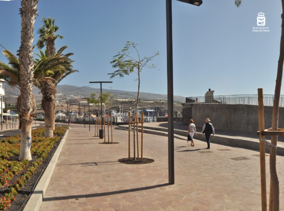 La inversión de 1,9 millones de euros de los cuales el Cabildo aportó un 80% y el Ayuntamiento de Guía de Isora un 20%, dotó en esta primera fase al paseo costero de amplias aceras y zonas peatonales, un acceso más cómodo al muelle y un nuevo escenario con gradas, así como una nueva estación de bombeo.