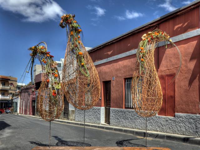 La exposición, conformada por dieciocho fotografías, realiza un recorrido por los distintos trabajos de arte floral, pioneros en la comunidad autónoma canaria, que se exponen en las diferentes calles del casco histórico de Guía de Isora durante el jueves y viernes santo.
