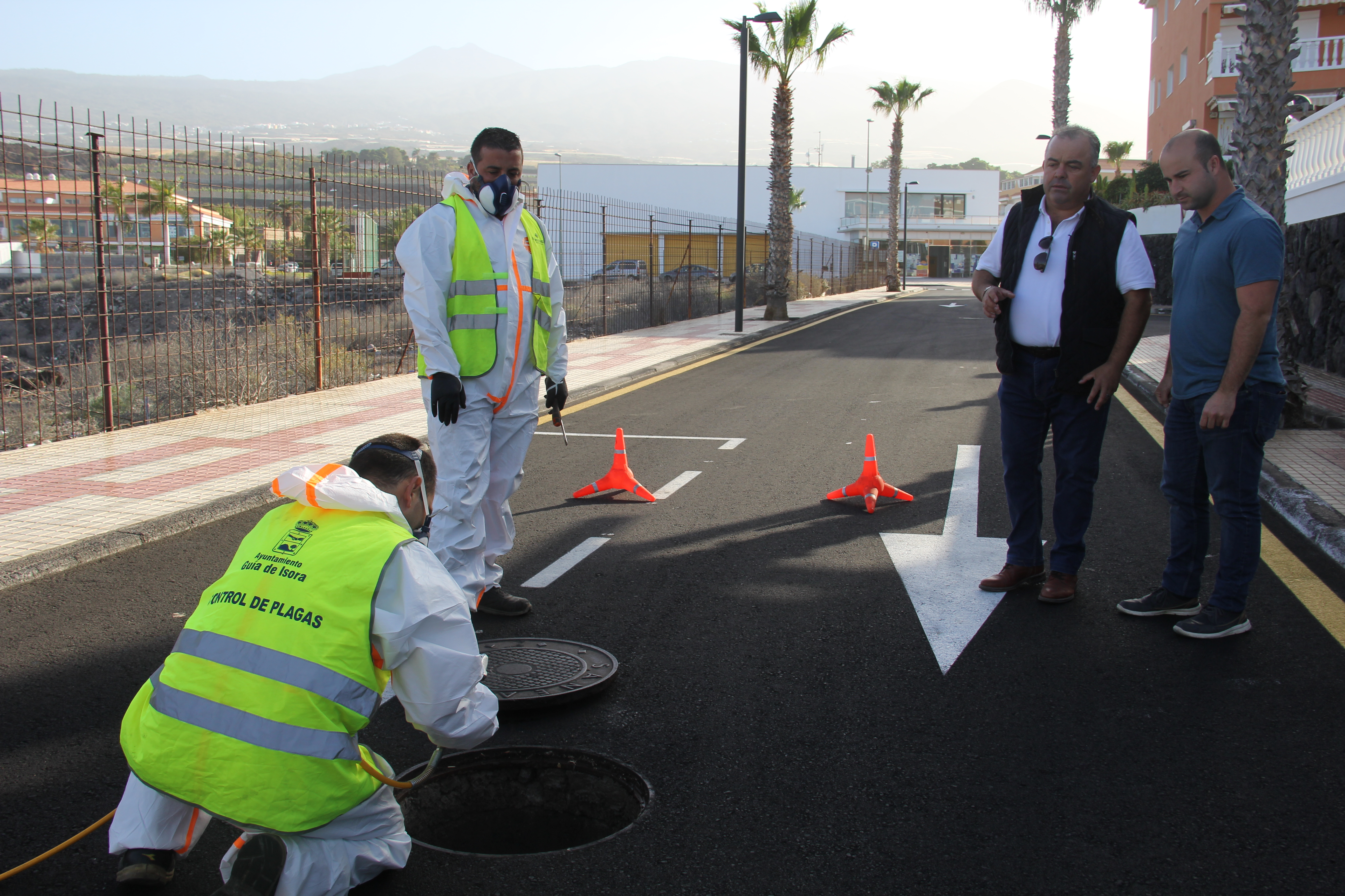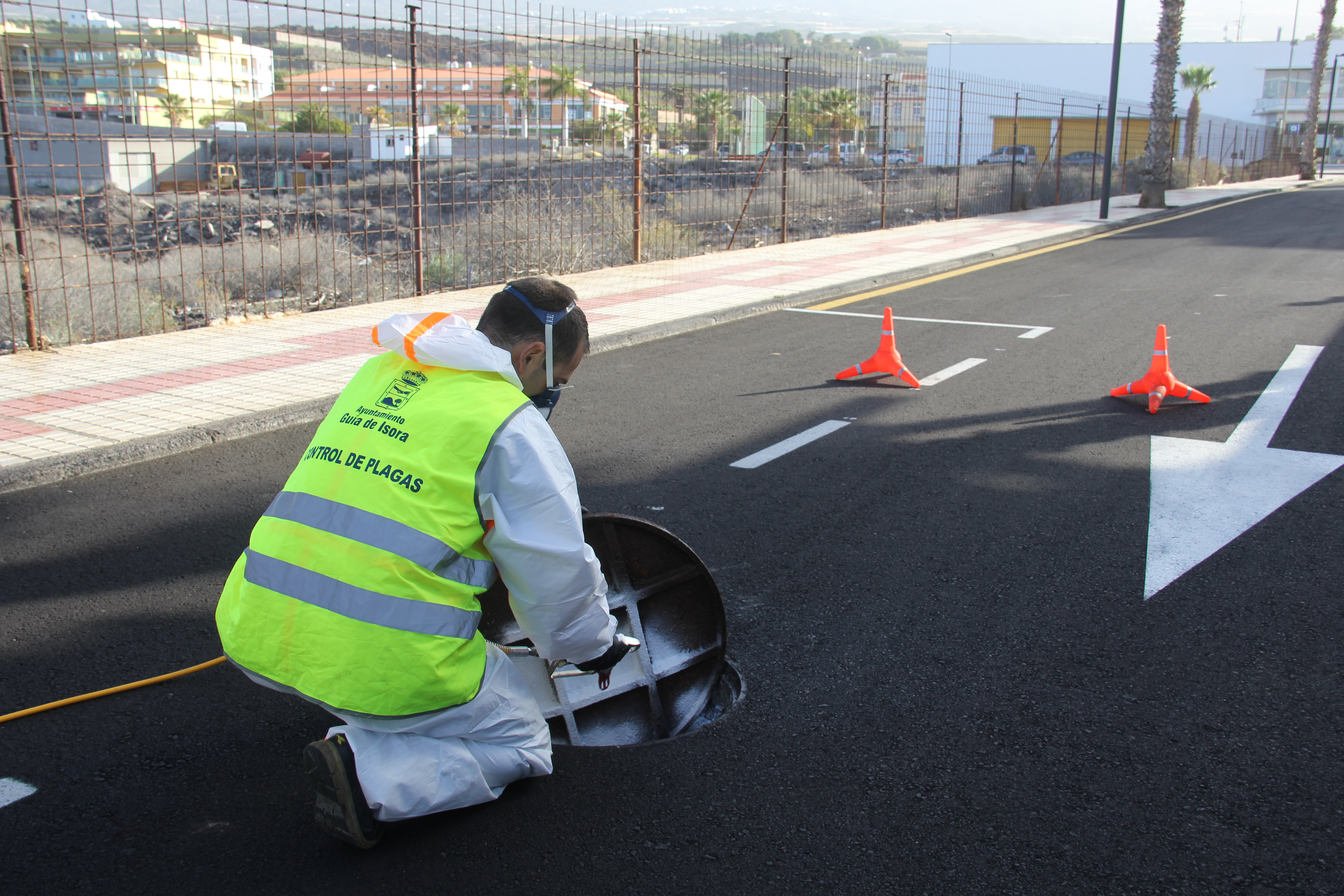 El Ayuntamiento de Guía de Isora ejecuta desde comienzo de esta semana la campaña de control de plagas anual previa a la primavera. Este año lo hace implementando un novedoso sistema basado en el uso de pintura insecticida en el alcantarillado municipal.