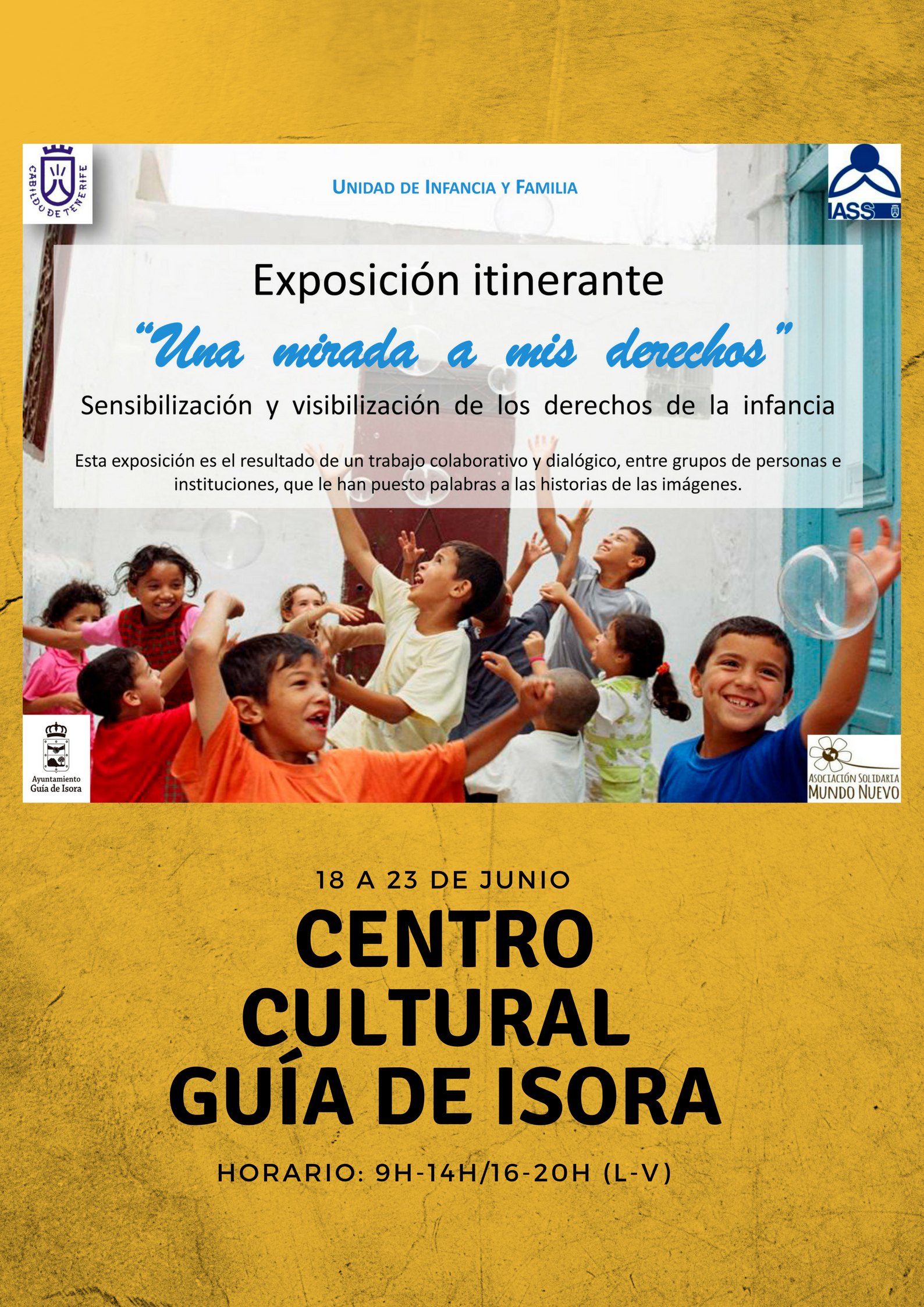 La exposición itinerante ‘Una mirada a mis derechos’, organizada por la Unidad de Infancia y Cabildo de Tenerife, estará abierta al público hasta el próximo 23 de junio en el Centro Cultural de Guía de Isora.