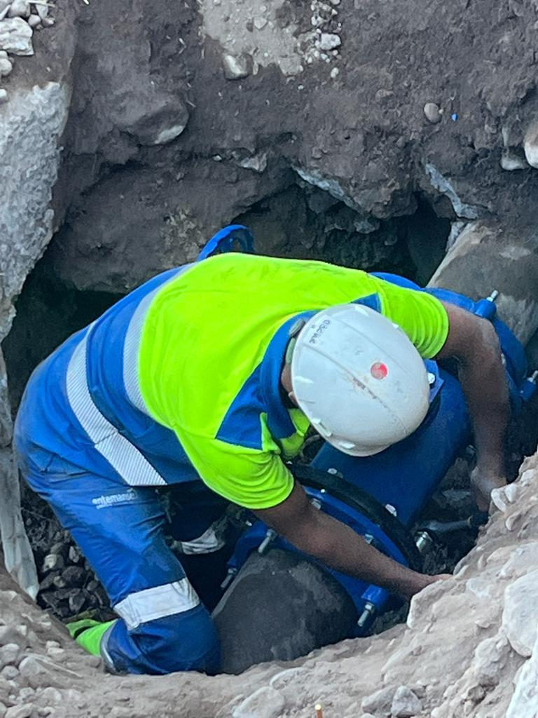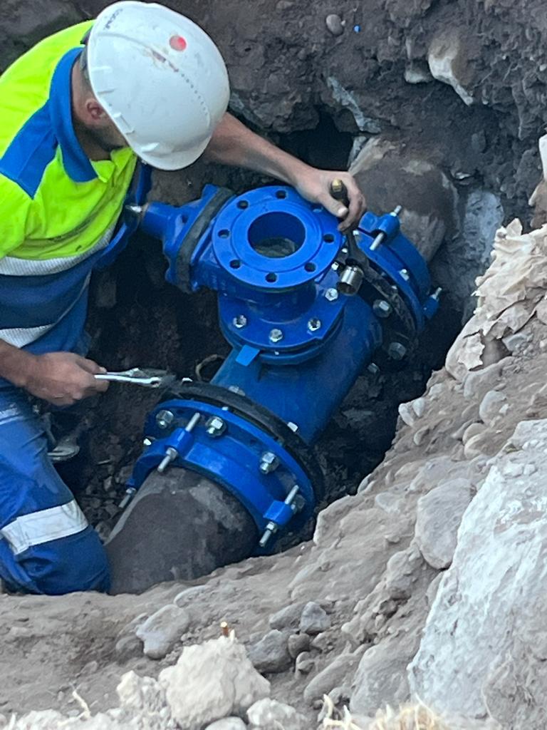 La pasada noche se produjo una avería en una tubería que suministraba agua potable al núcleo de Playa de San Juan. Advertidos de tal incidencia actuamos con carácter de emergencia y durante la noche, el Concejal de Servicios Municipales David Reyes, el personal del Ayuntamiento de Guía de Isora, la Empresa Entemanser en coordinación con el Cabildo de Tenerife y el Consejo Insular de Aguas, pudieron subsanar las deficiencias analizadas.