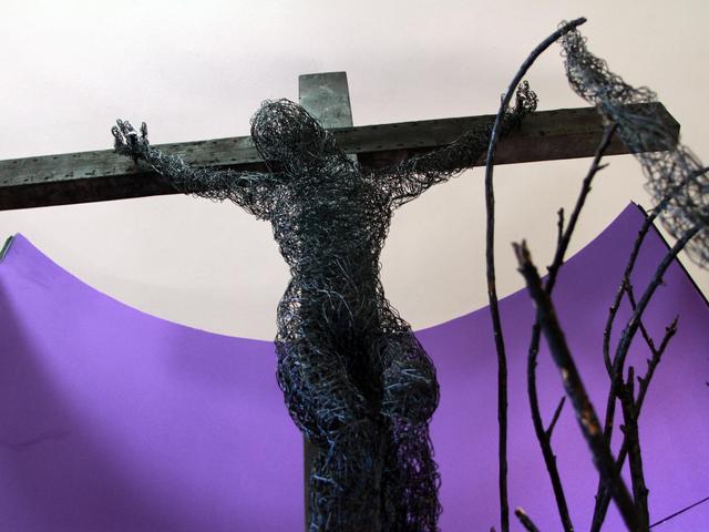 Carlos Curbelo, que además es especialista en arte floral, presenta este año nueve propuestas: que llevan por título Crucifixión, Corazón de María, Consagración del pan – Tomad y comed, Rosario, Destrucción del templo, Flagelación, Juan, Consagración del vino – Tomad y bebed y Oración en el huerto. Curbelo lleva trabajando en sus obras unos tres meses, desde pasado la festividad de Reyes. Para implementarlas ha utilizado mucho material vegetal (flores naturales, semillas, badana, cañas), metacrilato, hierro, sogas, papel, etc.