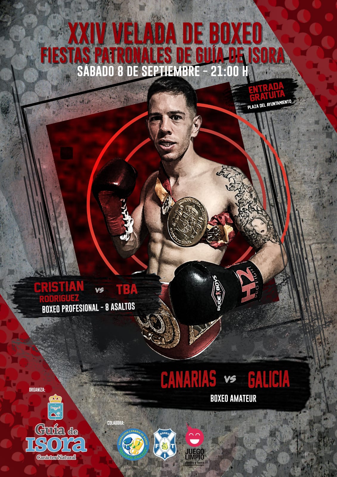 De nuevo Guía de Isora apuesta por el boxeo, en esta ocasión con una gran velada donde se podrá ver a uno de los púgiles profesionales más carismáticos de Tenerife, Cristian Rodríguez.