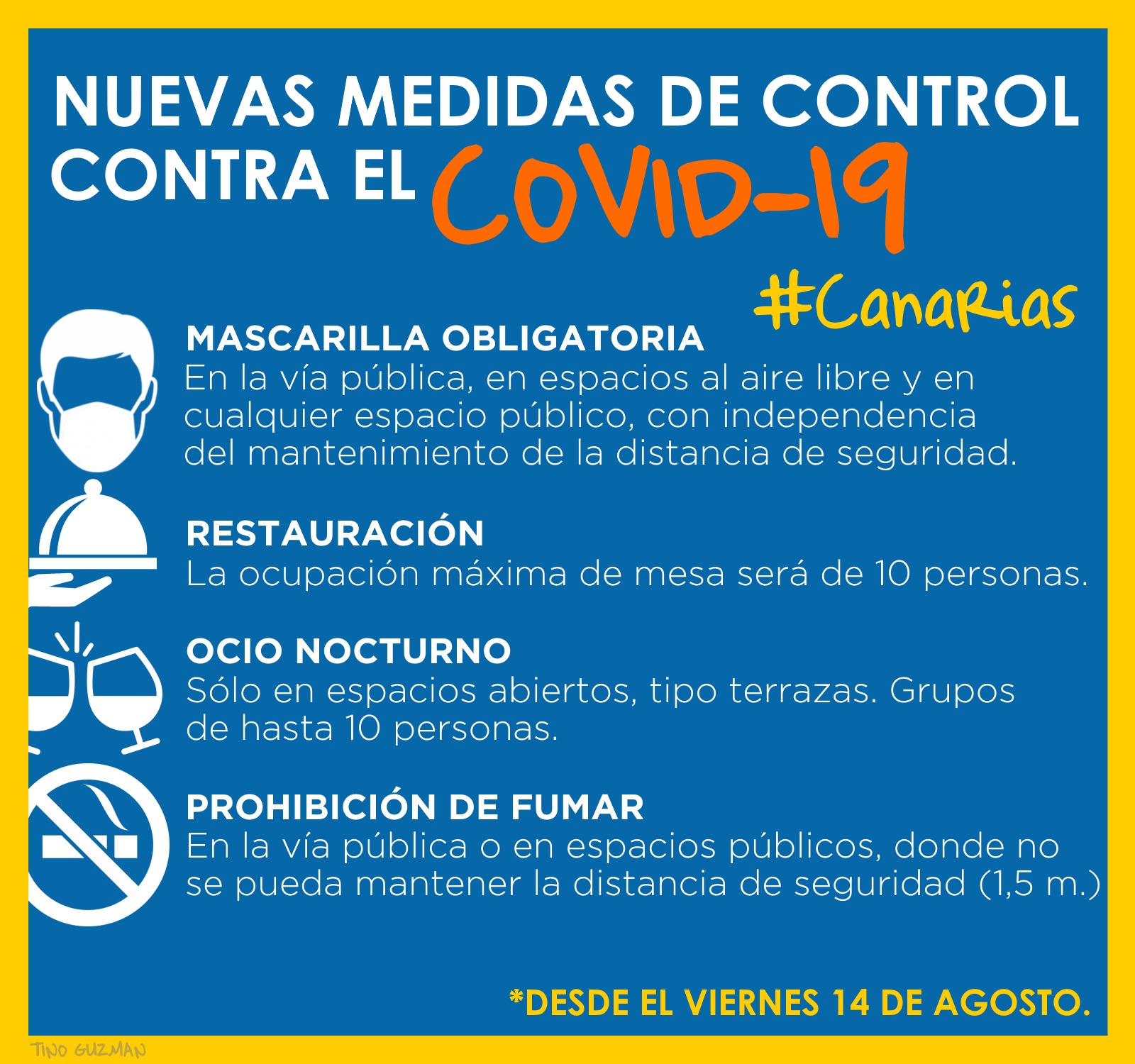 Desde este viernes, 14 de agosto, el Gobierno de Canarias ha procedido a adoptar una serie de nuevas medidas para el control de la #COVID19 en Canarias, con el fin de cuidar de la salud de todos y todas: