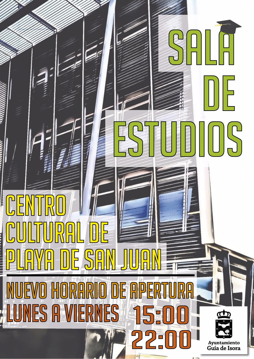 Nuevo horario de la sala de estudios del Centro Cultural de Playa San Juan. Se abrirá de 15h a 22h de lunes a viernes.