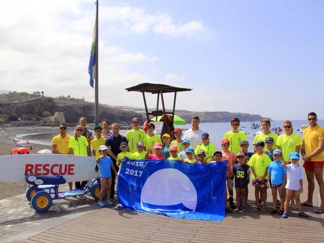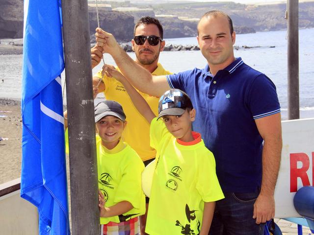 En la mañana de este miércoles 29 de junio se realizó el izado oficial, que contó con presencia de los concejales de Medio Ambiente y Desarrollo Turístico del Ayuntamiento de Guía de Isora, Francisco Baute y José Miguel Mesa, respectivamente, que estuvieron acompañados por Eduardo Ugalde y Alejandro del Rosario, representantes de Gestión Torviscas, empresa concesionaria de los servicios de la zona de baño. Como invitados especiales acudieron el alumnado y monitores del campamento de verano en la Escuela Municipal de Deportes Náuticos de Playa San Juan, de los cuales un niño y una niña fueron los encargados, junto al concejal de Medio Ambiente de realizar el primer izado de la Bandera Azul del periodo 2016-2017.