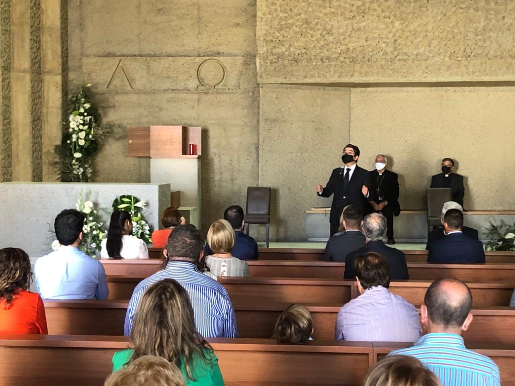 En representación del Gobierno de Canarias, Alicia Vanoostende, Consejera de Agricultura, Ganadería y Pesca, destacó la original arquitectura del templo y el empleo de recursos como la iluminación natural. Usó la simbología de Alfa y Omega como mensaje de optimismo ante la situación actual “símbolos que bien pueden representar el fin de una etapa de sufrimiento y dificultades y un nuevo comienzo para toda la sociedad” comentó.